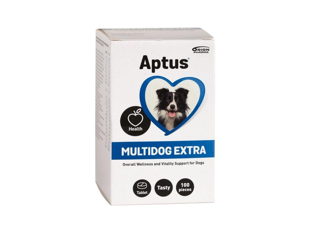 Tablety Aptus Multidog Extra s příchutí jater mohou být podávány přímo do tlamy jako pamlsek. Můžete je také rozdrtit a zamíchat do krmení. Někdy může Váš pes potřebovat každodenní suplementaci multivitaminem i tehdy, když žere nedostatečně. Při krmení doma připravovaným krmením je přidávání multivitaminového doplňku stravy nezbytné k dosažení správné nutriční hodnoty krmiva. Multivitaminový doplněk stravy potřebují často také nemocní a stresovaní psi v průběhu rekonvalescence. Aptus Multidog Extra je multivitaminový doplněk stravy ke každodennímu používání k podpoře celkového zdraví a vitality Vašeho psa.