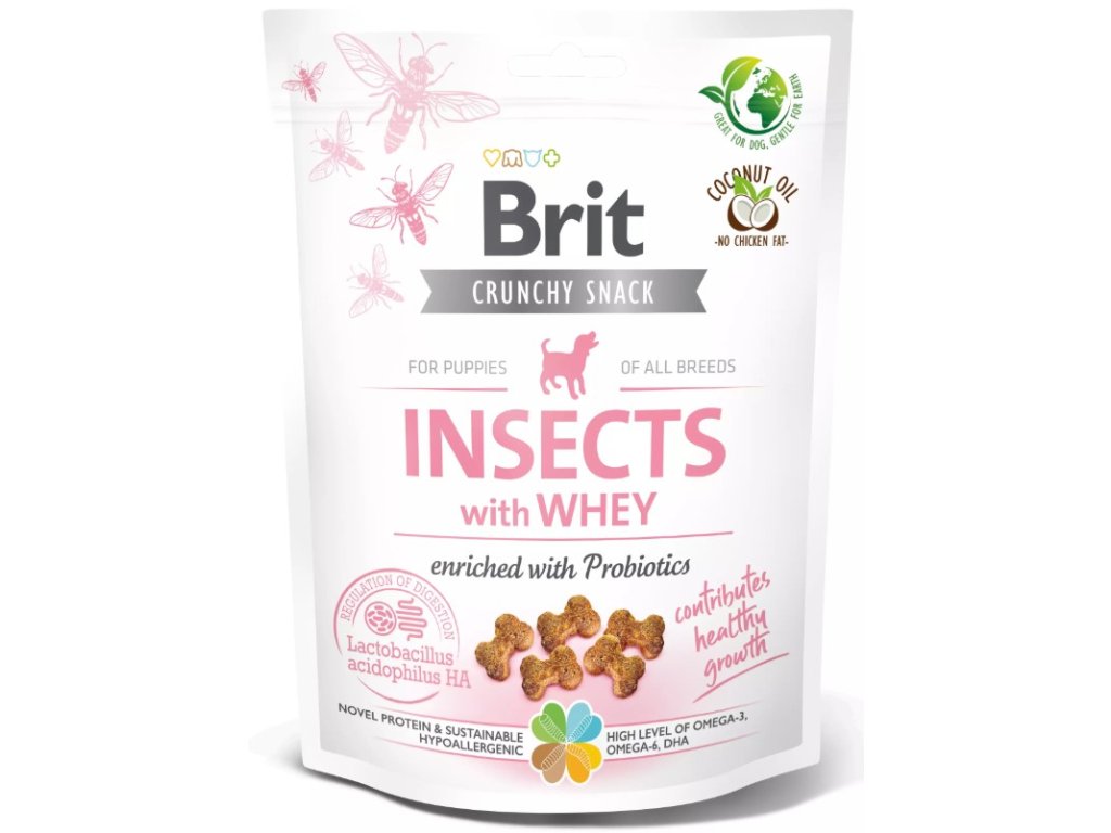 Funkční pamlsky Brit Care Dog Puppy Insects with Whey & Probiotics jsou výbornou volbou pro rostoucí štěňata bez rozdílu plemene. Obsahují nízkotučný hmyzí protein, syrovátku a probiotika. Přináší tedy spoustu bílkovin, málo tuků a podporují vývoj a trávení. Křupavé dobroty na každý den.