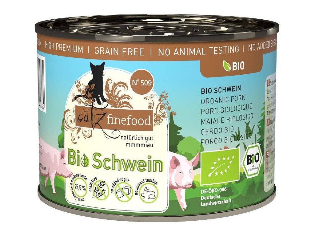 Kompletní monoproteinové krmivo v bio kvalitě, které zajistí vaší kočce vyváženou stravu. Všechny suroviny jsou certifikované a pochází z ekologického zemědělství. Kočky milují výtečnou chuť čerstvě zpracovaného masa a drobů té nejvyšší kvality. Krmivo Catz finefood Bio je ideální také pro kočky s citlivým zažíváním či potravinovými alergiemi.