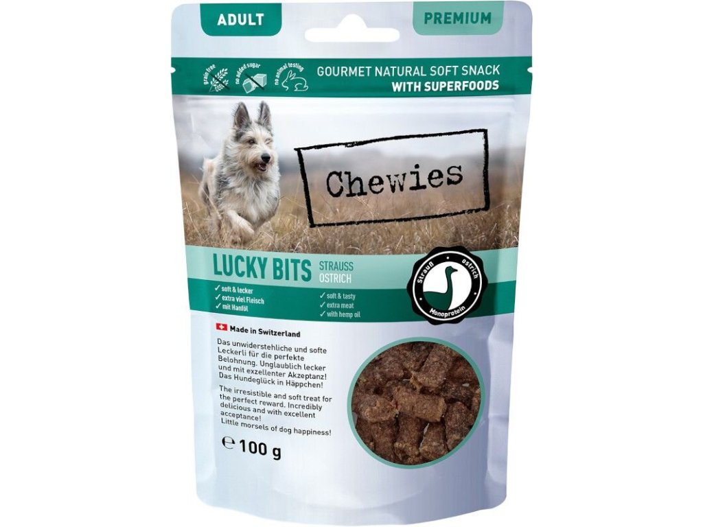 Chewies Lucky Bits pamlsky s pštrosím masem 100g
