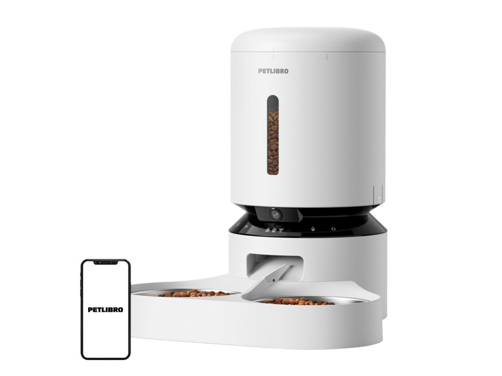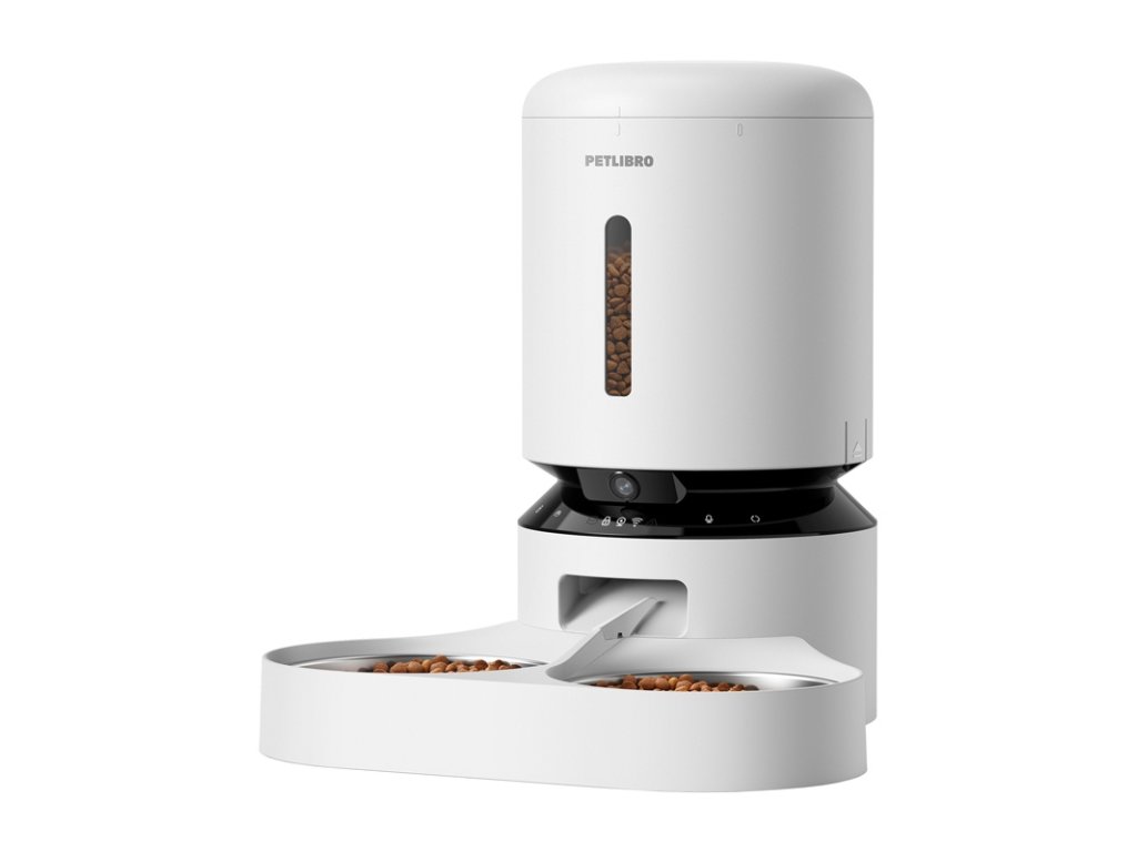 Dávkovač krmiva Petlibro Granary s kamerou a dvojitou miskou, 5 l (bílý)