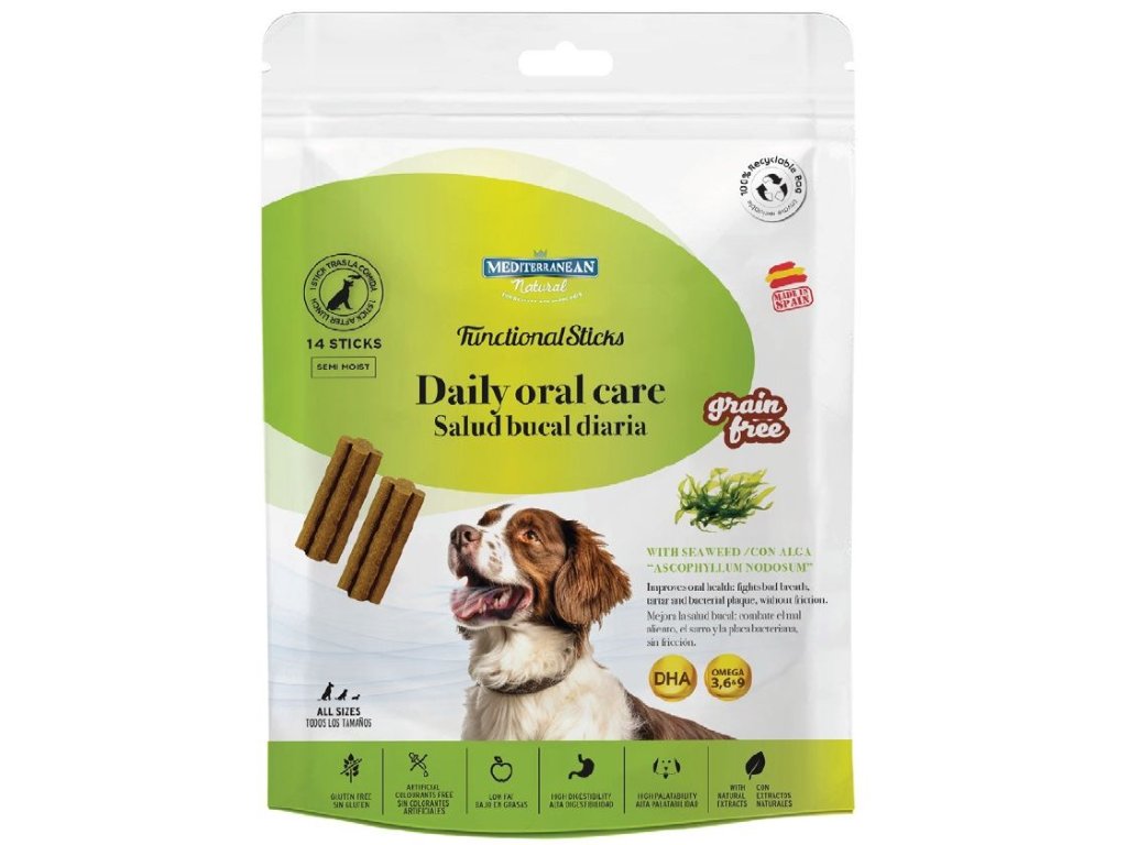 Pomáhá pečovat o celkovou ústní dutinu psa. Obsahuje mořskou řasu, kdy dlouhodobým užíváním lze narušit již stávající zubní kámen, který časem zmizí nebo ho lze snadno kartáčkem odstranit.
