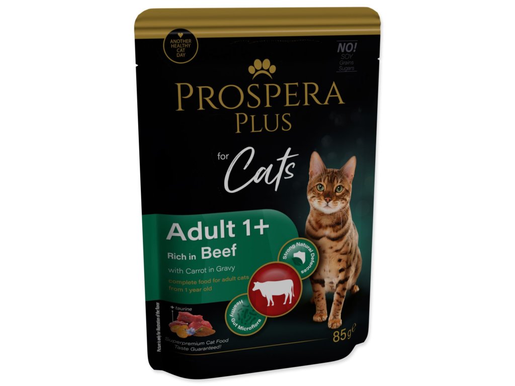 Kompletní krmivo pro kočky od 1 roku v podobě kapsičky s hovězím a dýní v omáčce.