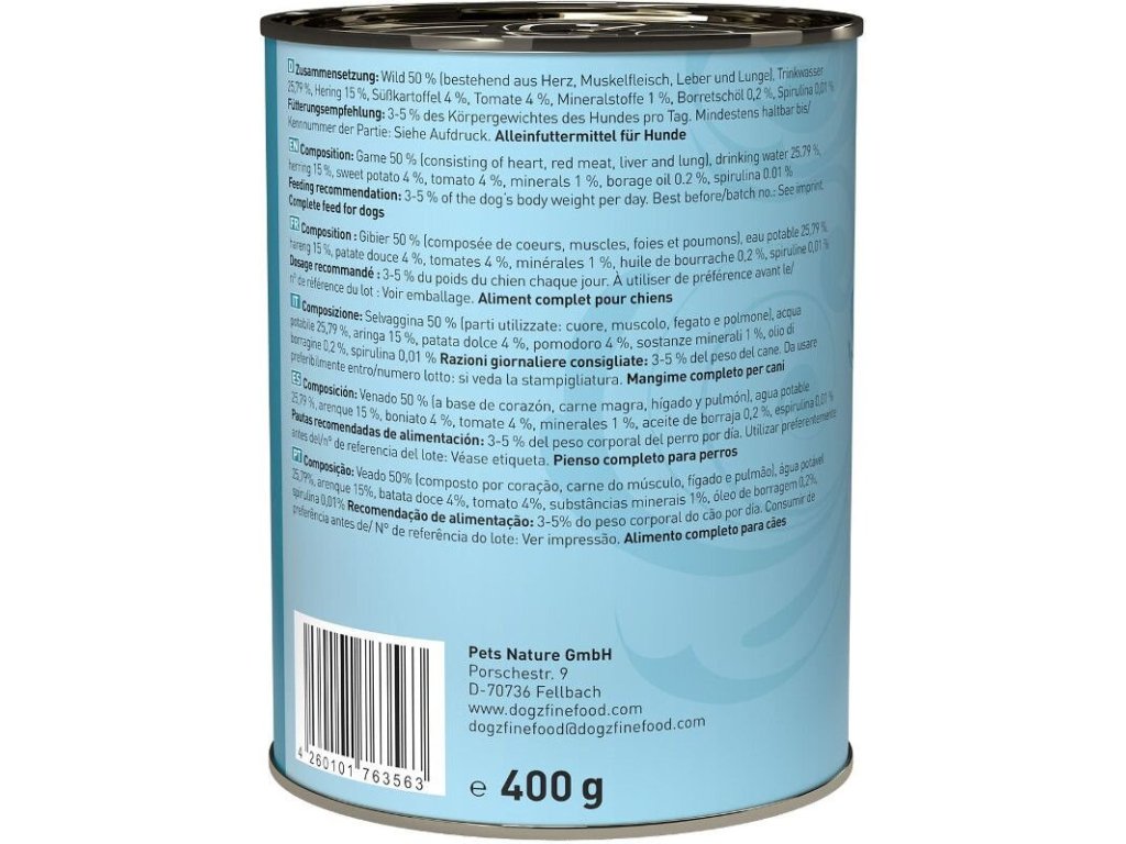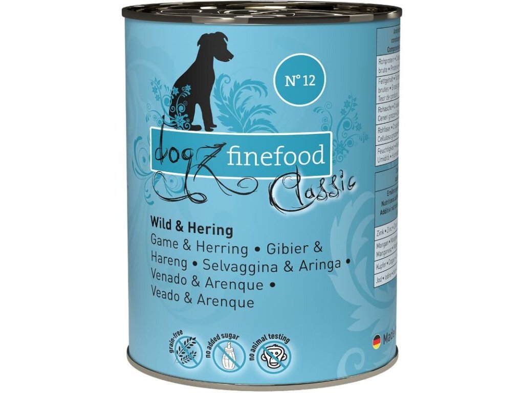 Konzerva Dogz Finefood No.12 se zvěřinou a sledím masem 400 g