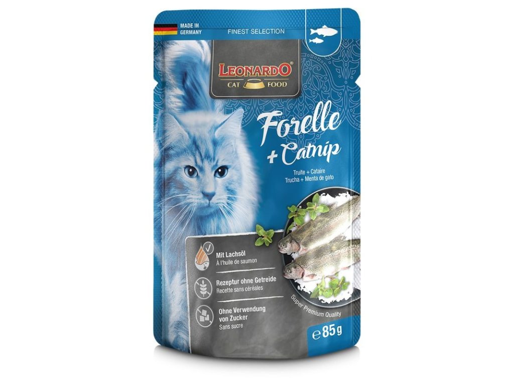 Leonardo adult pstruh a catnip ve šťávě 85 g