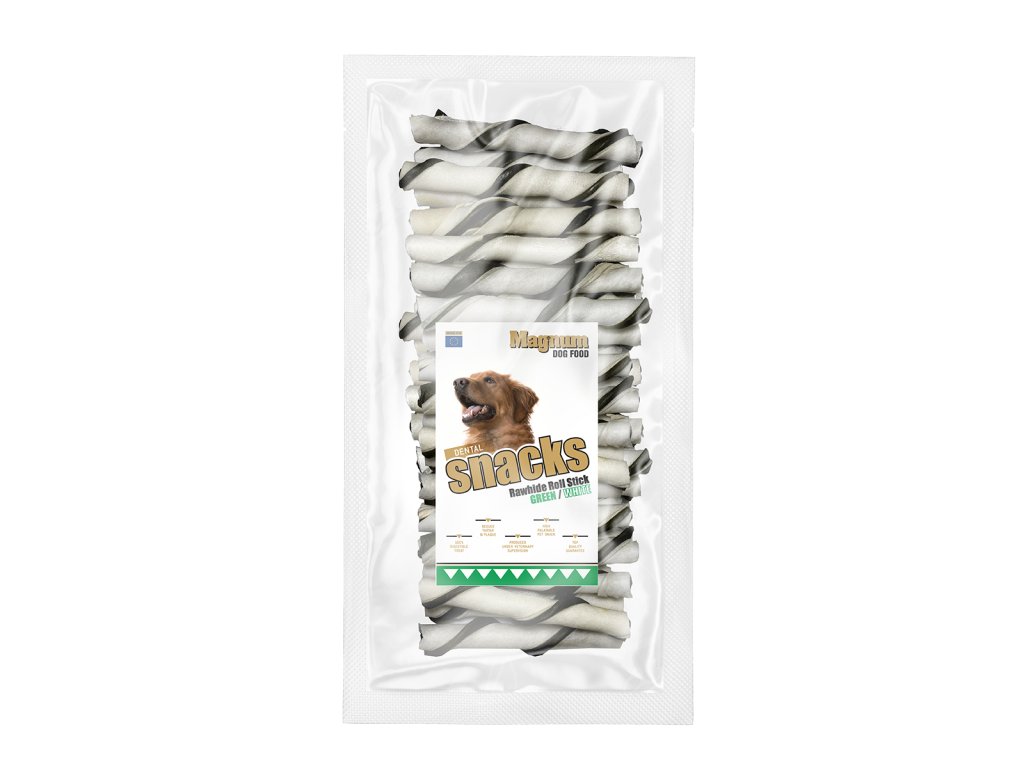 Magnum Rawhide roll stick GREEN/WHITE 5" 12,5cm 40ks