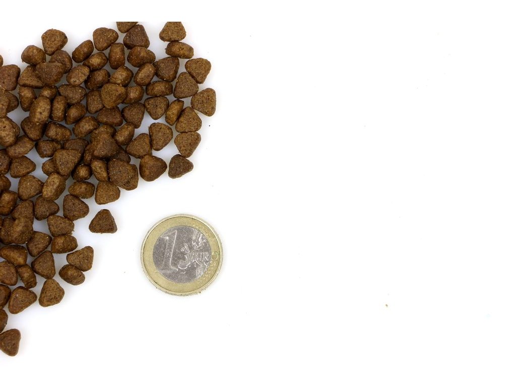 Hrubá bílkovina, 34% Hrubé tuky 20%, Hrubá vláknina 2%, Hrubý popel 9%, Vlhkost 7%, Vápník 1,86%, Fosfor 1,61%, Omega 3 0,62%, Omega 6 3,77%