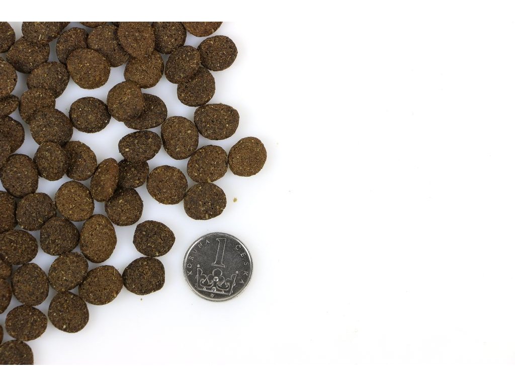 Hmotnost krmné dávky uvedená na obalu krmiva je orientační. Individuálně závisí na plemeni, věku, aktivitě, temperamentu, zátěži, genetických faktorech. Nepřekrmte svého psa v důsledku toho, že se necháte ovlivnit jeho chutí k jídlu a dychtivostí po granulích. Překrmení je nejčastější příčinou poruchy trávení. Denní krmnou dávku rozdělte štěňatům podle věku na 5-3 porce, dospělým jedincům na porce dvě. Krmivo můžete zkrmovat suché nebo navlhčené, navlhčené nenechávejte v misce déle než půl hodiny. Pes musí mít dostatek pitné vody. Na krmivo přecházejte postupně. Přechodu na nové krmivo věnujte několik dní, kdy budete míchat nové se stávajícím.