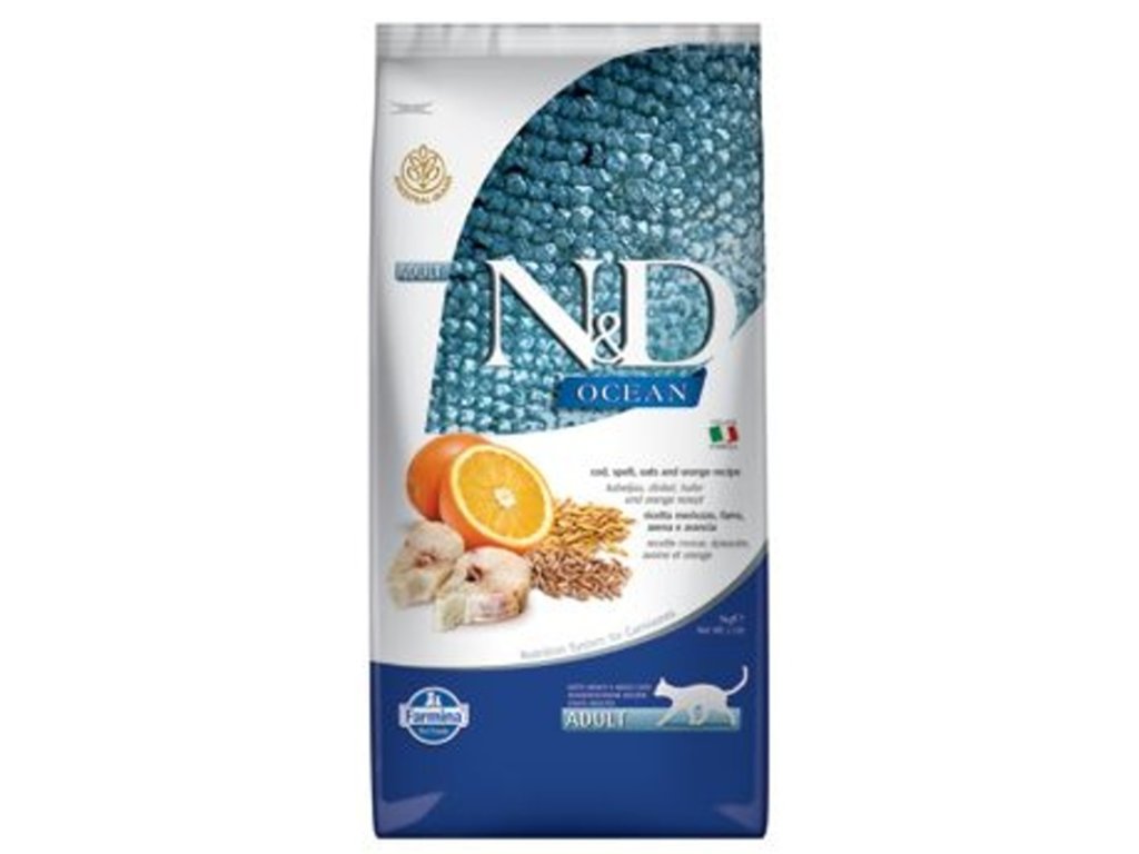 Receptura s treskou a pomerančem pro dospělé kočky.