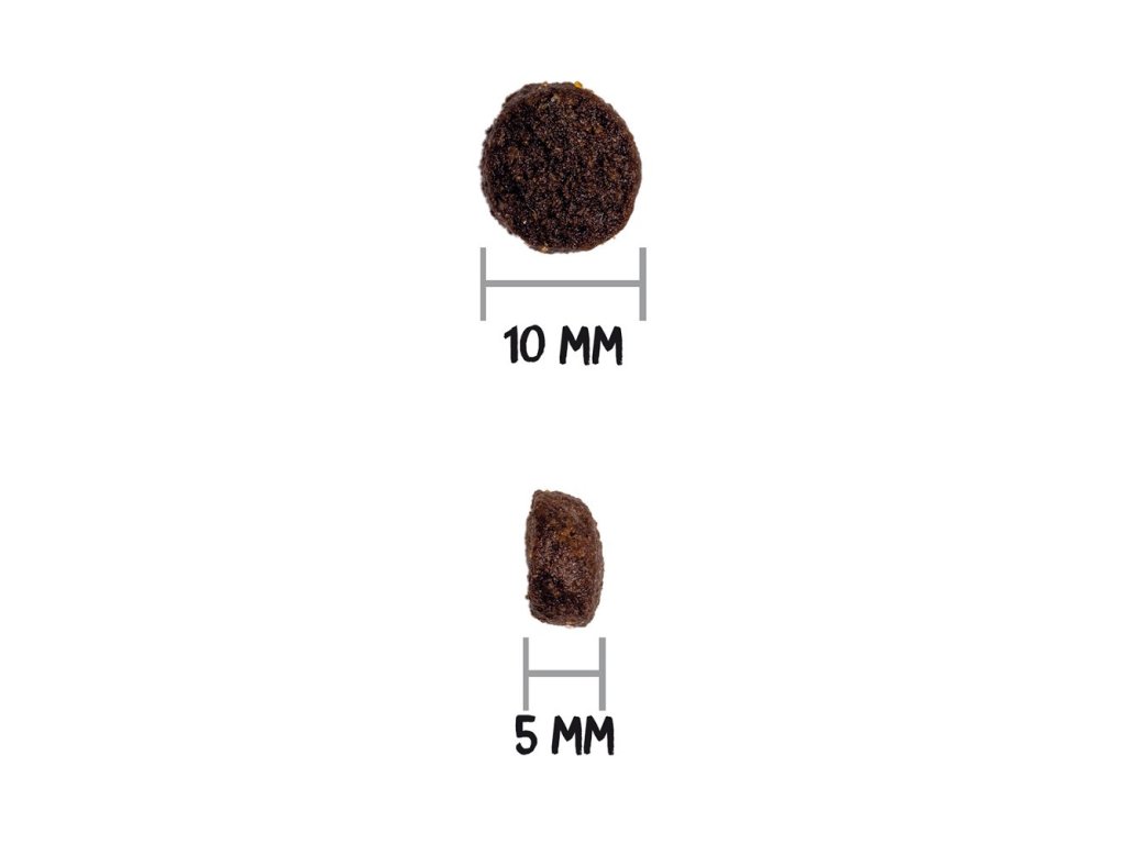 ANALYTICKÉ SLOŽKY: Protein: 38%, obsah tuku: 19%, hrubá vláknina: 3%, obsah anorganických látek: 9%, vlhkost: 8%, omega 6: 2,5%, omega 3: 0,3%, vápník: 1,7%, fosfor: 1,2%.DOPLŇKOVÉ LÁTKY/kg: Výživové doplňky: Vitamin A 22.000 UI, vitamin D3 1.500 UI, vitamin E 350 UI, vitamin C 100 mg, taurin 1.100 mg, L-karnitin 200 mg, měď (síranu měďnatého(II) pentahydrá) 5 mg, měď (chelátu mědi(II) aminokyselin, hydrátu) 5 mg, mangan (oxid manganatý) 50 mg, zinek (oxid zinečnatý) 100 mg, železo (síranu železnatého(II) monohydrát) 50 mg, zinek (chelátu zinku a aminokyselin, hydrátu) 10 mg, jod (jodid draselný) 4 mg, selen (seleničitan sodný) 0,3 mg.