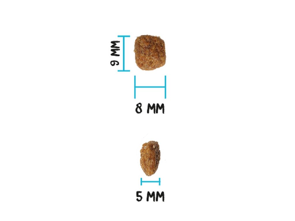 Bílkoviny: 35 %, tuk: 18 %, vláknina: 2 %, anorganické látky: 7 %, vlhkost: 8 %, omega 6: 2,5 %, omega 3: 0,6 % (EPA: 0,2 %, DHA: 0,2 %), vápník: 1 %, fosfor: 0,9 %