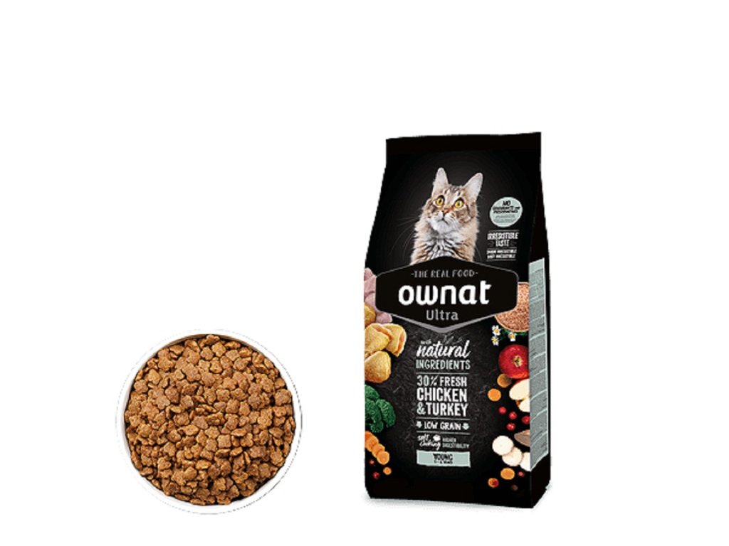 Ownat Ultra Young je výživově vyvážené krmivo určené pro dospělé kočky všech plemen s běžnou úrovní aktivity. Obsahuje 30 % čerstvého kuřecího a krůtího masa, doplněného o rybí složky (losos) a další přírodní suroviny. Díky vysokému obsahu kvalitních bílkovin podporuje svalovou kondici, vitalitu a zdravou srst.