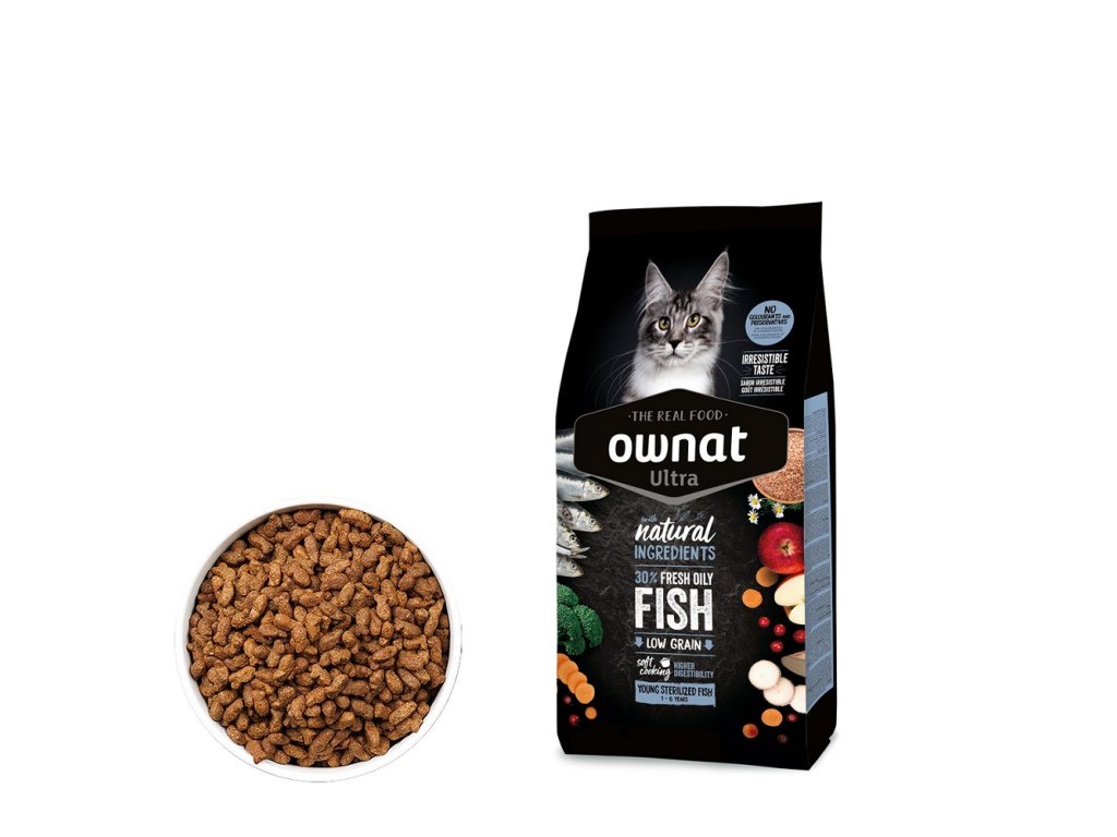 Ownat Ultra Young Sterilized Fish je navrženo speciálně pro sterilizované kočky, které mají nižší energetické nároky, ale zároveň potřebují kvalitní výživu a atraktivní chuť. Obsahuje 30 % čerstvých tučných ryb, které dodávají bílkoviny vysoké biologické hodnoty a přirozenou chutnost. Zvýšený obsah vlákniny navozuje pocit sytosti a podporuje udržení zdravé tělesné hmotnosti.