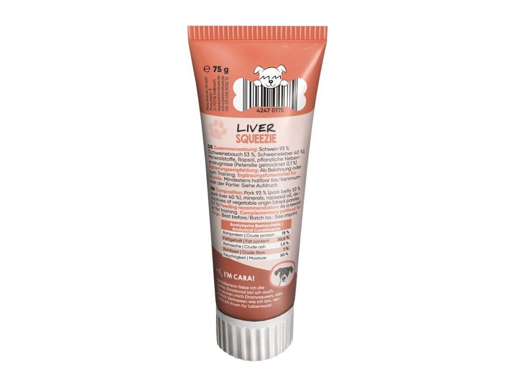 Tento krémový pamlsek je zdravou, výživnou a praktickou odměnou, která potěší vašeho psa lahodnou chutí a vůní, zatímco vy zajisté oceníte přírodní složení pamlsku a jeho pohodlné podávání.